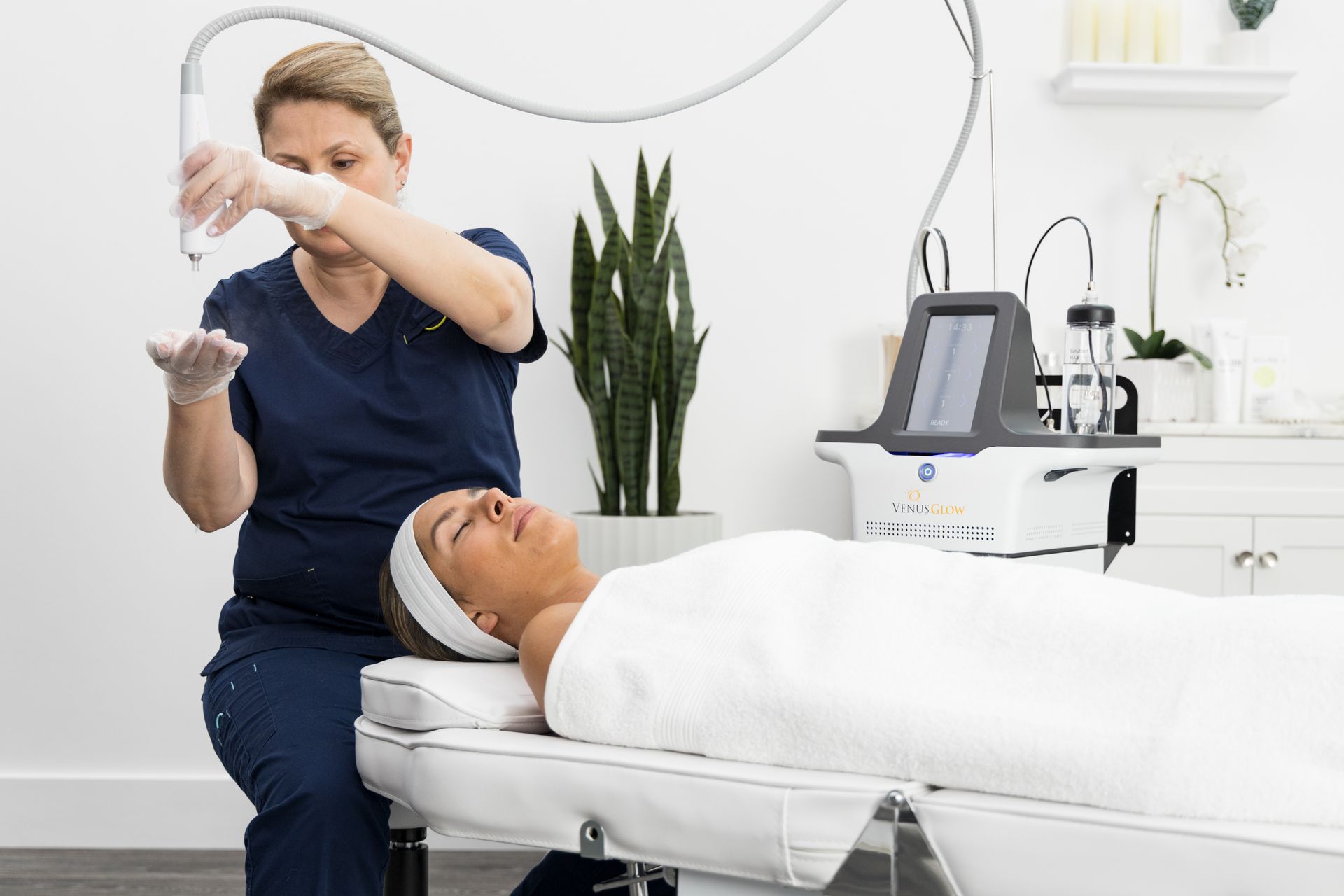 "Unlike traditional facials that rely on manual extractions and scrubs, Venus Glow™ uses advanced technology to deeply cleanse and rejuvenate the skin more effectively and gently."